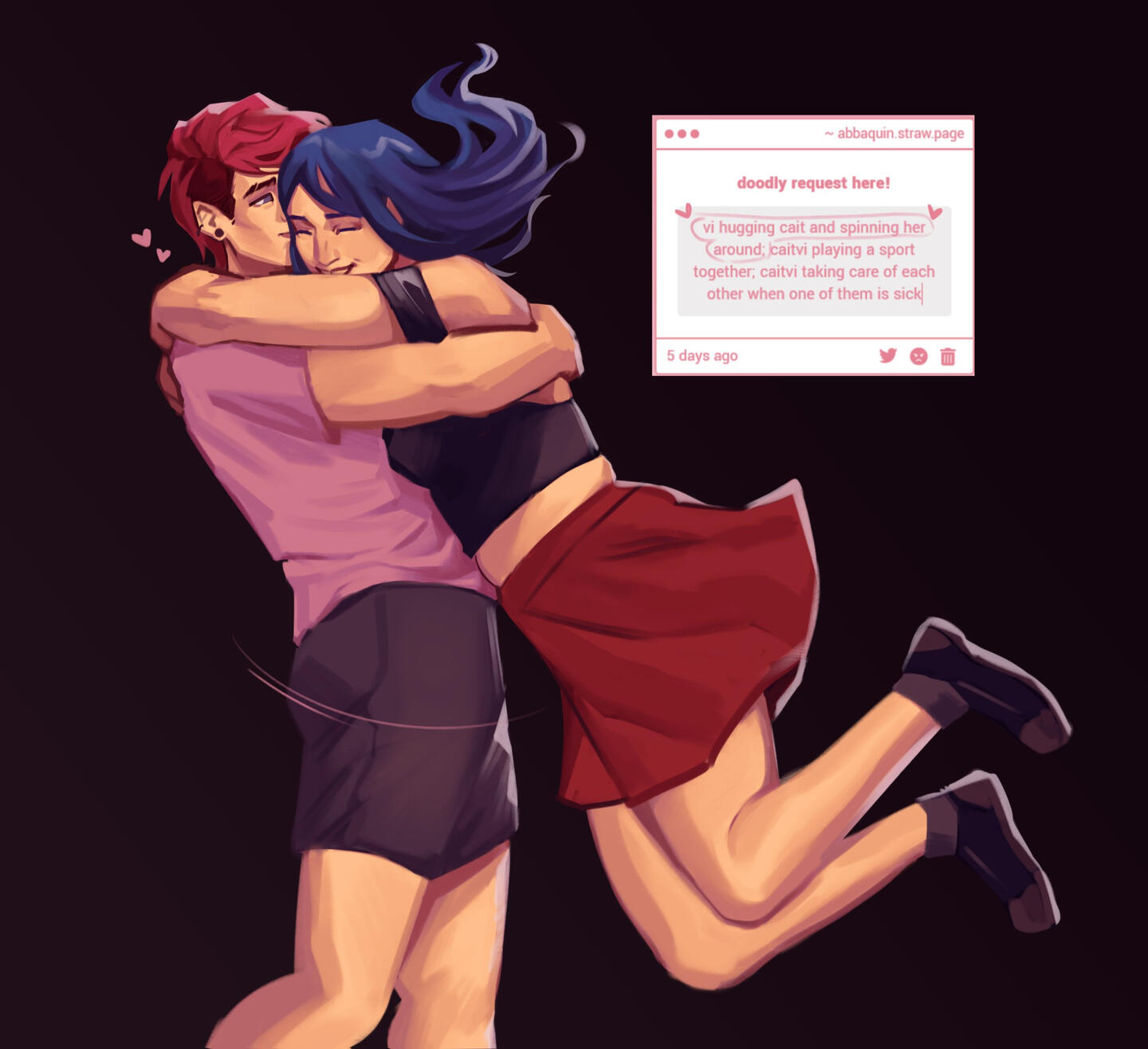 • *Please be prepared with a fully fleshed out idea for your commission. the prices I have decided on do not factor in the additional time and effort it takes to come up with an idea on your behalf, but if you have a solid idea and just need help finding references then I'm happy to help <3• I encourage: cool lighting scenarios, plus sized characters, lesbians/sapphic pairings- these are my favourite things to draw so naturally i'm more skilled at them!