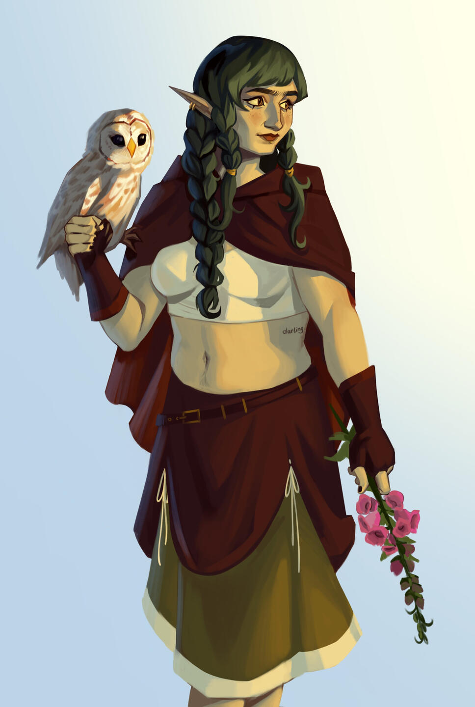 A loose sketch with no rendering or background. Will include flat colours with some shading and/or lighting elements upon request.